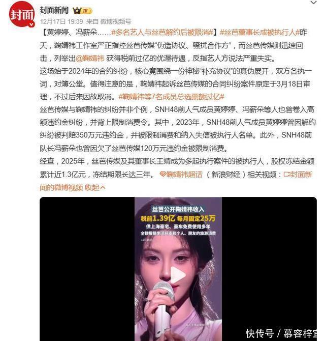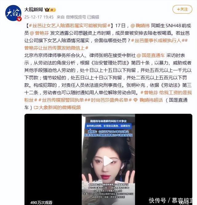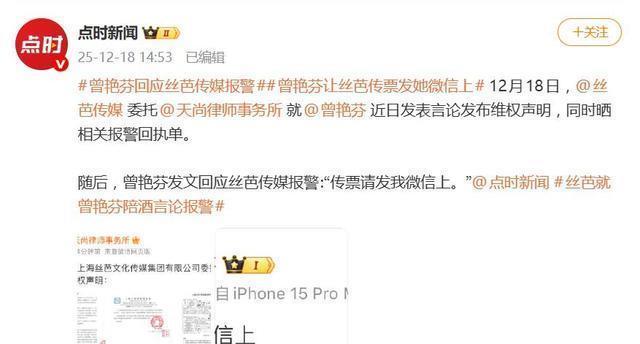 12月18日,丝芭传媒一纸律师声明配上报警回执,试图给一场愈演愈烈的舆论风波按下“法律暂停键”。然而,前成员曾艳芬一句“传票请发我微信上”的隔空硬刚,不仅让这波危机公关瞬间哑火,更将偶像工业背后“陪酒应酬”、“天价违约金”、“合约罗生门”等黑箱操作,彻底炸上了公众审视的台面。